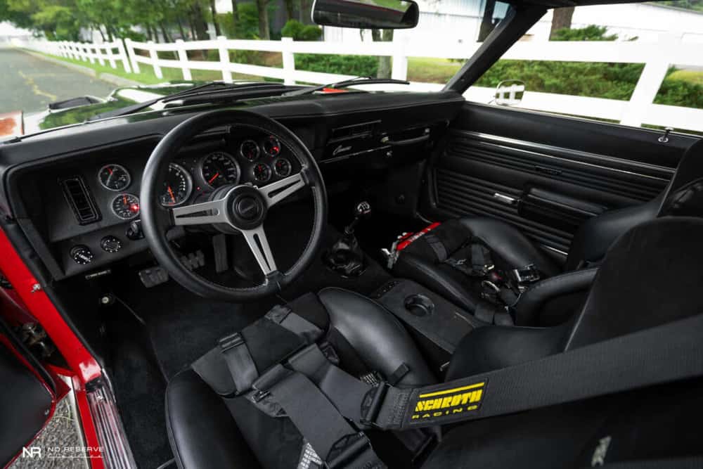 Step inside, and you’ll find a blend of modern comfort seamlessly integrated into a classic design. Every element exudes attention to detail and craftsmanship, from the Detroit Speed dash insert to the Recaro sports seats.